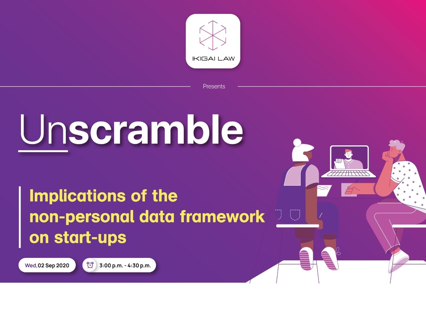 The committee released its report on the governance framework for NPD in July 2020. If brought into law in its current form, the framework would require startups to compulsorily share their proprietary data with the government and competitors, in some cases, without remuneration. To understand the implications of this law on tech startups and businesses at large, Ikigai Law will host a virtual roundtable discussion — “Unscramble: Implications Of The Non-Personal Data Framework For Startups” — on September 2, 2020.